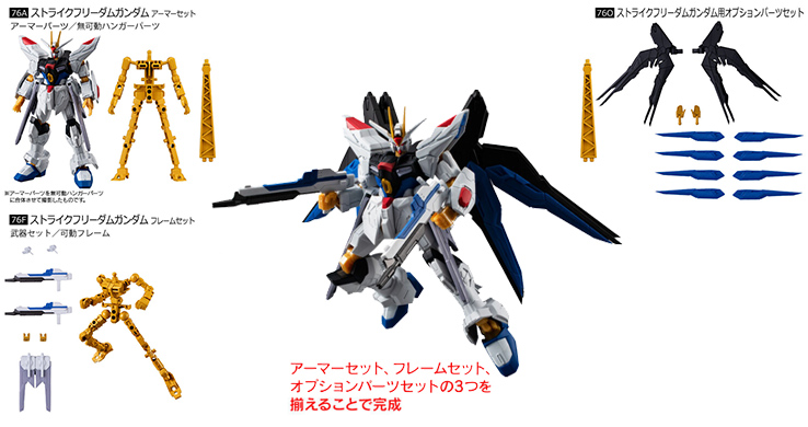 「ストライクフリーダムガンダム」はアーマーセット、フレームセット、「ストライクフリーダムガンダム用オプションパーツセット」の3つを揃えることで完成!