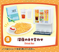 いつでも!誰でも!気軽においしいファミリーレストラン! 大人からこどもまでみんなだいすき!なファミレスのミニチュアが登場!全部集めるとドリンクバーのある店内のシーンを再現できるよ。配膳ロボットにメニューを乗せることも!