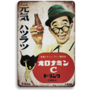 本物同様にヴィンテージ感溢れるブリキで作られており、全長20x30cmと本物同様のビックサイズです!4隅に3mmの穴があり、ピンで壁などに飾ることもできます。錆びているようなヴィンテージ感がありますが、実際は錆びていませんので、安心して使用できます。 第1弾との違いはオロナミンCが黄金バットに、オリエンタルカレーが横型になっています。