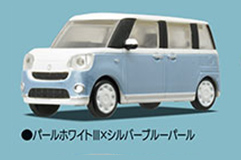 2トーンのかわいくておしゃれなキャンバスが1/64スケールモデルで登場です 1/64PLUS(プラス)シリーズ、第16弾はダイハツムーヴキャンバスです。今回のギミックはバックドアの開閉です。1/64スケールのフィギュアも付属し、一緒に並べることで様々なシーンを再現して楽しむことができます。