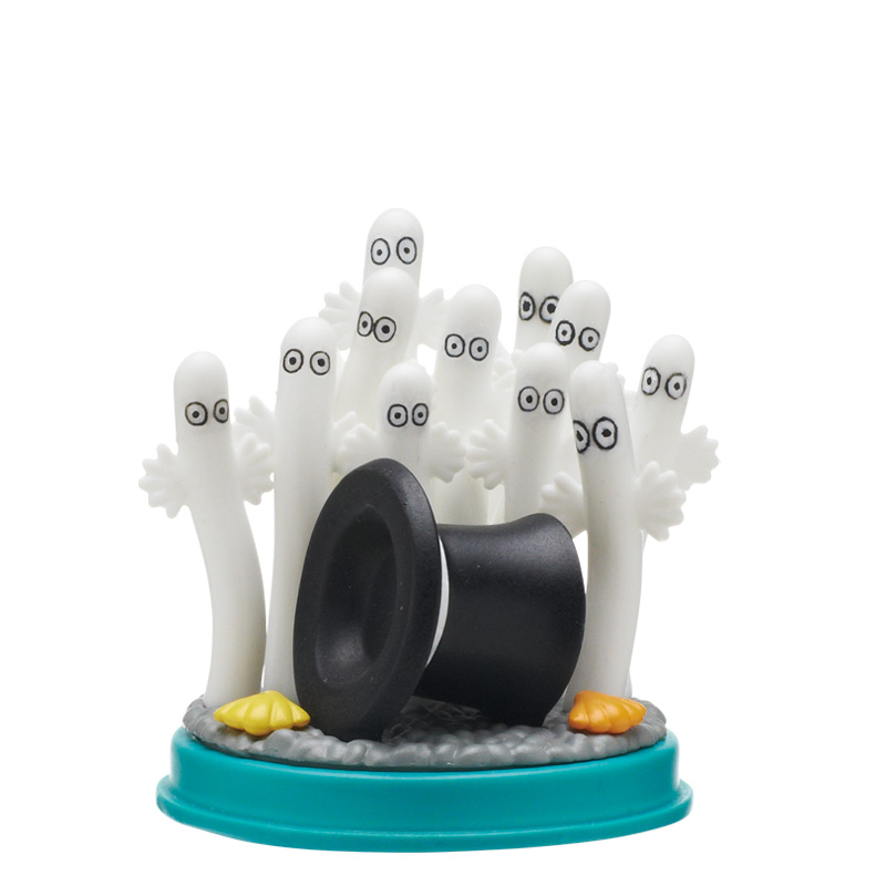 ムーミンー家の大切な友だち「トゥーティッキ」を原作に忠実にカラフルに動きのあるポーズで制作。立体化の機会が小ない「サロメちゃん」はムーミンファンには嬉しいサプライズ。ムーミンファンにはおなじみの「モラン」は、ランプの光に照らされる印象的なシーンを大きなサイズで立体化しました。大入気キャラクター「ニョロニョロ」はムーミンパパの帽子を集団で用むシーンを再現。このサイズながら「11体を個別にパーツ分け」するなど、定番キャラクターにも新しい試みを行っています。