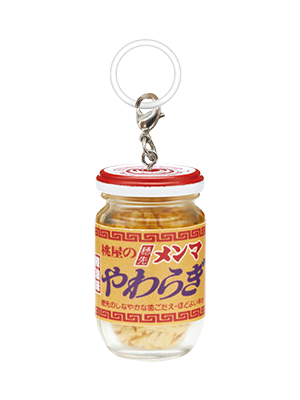 食卓のお供!桃屋の人気商品たちがめじるしマスコットになりました! ビンやラベルはもちろん、中身まで精巧に再現!めじるしマスコットとしての用途に留まらず、シリコンリングから取り外してチャームやミニチュアフィギュアとしてお楽しみいただけます!ぜひお好きな場所に飾ってお楽しみください!
