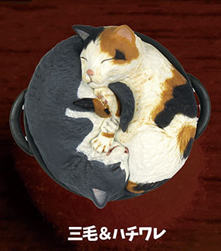 かわいいにゃんこたちがおなべのなか! 手のひらにちょこんと乗るコンパクトなサイズ感ながら、毛並みや表情の細部にまでこだわった精巧な造形が魅力のなべ・ねこ。原型制作は、リアルな作風に定評のあるSHINZEN造形研究所の竹内しんぜん氏。まるで本物の猫をそっと手に取ったような、見る人の心を和ませる逸品。コレクションに最適です。